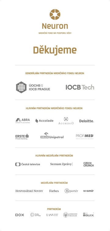 “I would like to welcome all the laureates to the Neuron Endowment Fund community and express our gratitude to everyone who spent the gala evening with us. I hope that everyone, not only the professional audience, enjoyed the mix of exceptional scientists, patrons and moderator Karel Kovář, Kovy,” adds Monika Vondráková. “I would like to extend our special thanks to our patrons and partners who believe in the power of human knowledge. Without their help, the Neuron Prizes and the Neuron Endowment Fund could not continue to support Czech science in such a way.”
