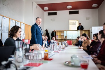 Setkání stážistů s izraelskou velvyslankyní, ředitelkou Nadace Neuron Monikovou Vondrákovou, ředitelem ÚOCHB Janem Konvalinkou a zástupci Nadačního fondu IOCB Tec-h