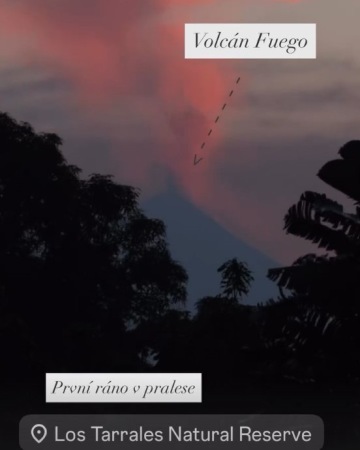Největší vizuální zážitek však na výpravu čekal po přesunu do přírodní rezervace Los Tarrales. Kromě bohaté fauny a flóry se členům týmu naskytl výjimečný, až dechberoucí pohled na aktivní vulkán Fuego.