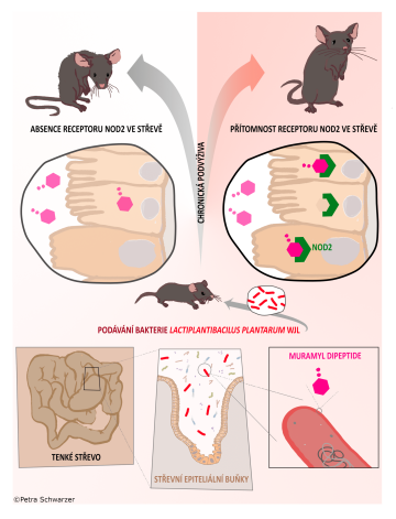 Když jsme v našem výzkumu určili, že ne všechny kmeny bakterie Lactiplantibacillus plantarum jsou schopné stimulovat růst, posunulo nás to dál. Dostali jsme se až k zjištění, že aby naše bakterie stimulovala růst, nemusí být ani živá, stačí pouze její buněčná stěna. Na straně hostitele jsme následně identifikovali receptor, který je za vnímání bakterie zodpovědný. Tímto receptorem je receptor přirozené imunity NOD2. Poté jsme ještě určili to, že tento receptor musí být přítomen v epiteliálních buňkách střeva, že tam hraje tu klíčovou roli. A právě to je obsahem naší publikace v Science.