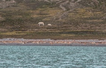 Setkali jsme se s relativně velkým množstvím ledních medvědů: jedním samcem a dvěma samicemi s mláďaty. Dohromady jsme tak viděli šest medvědů během této plavby. Přítomnost medvědů nám několikrát zamezila vylodění se v dané lokalitě a museli jsme se posunout o kousek dál.